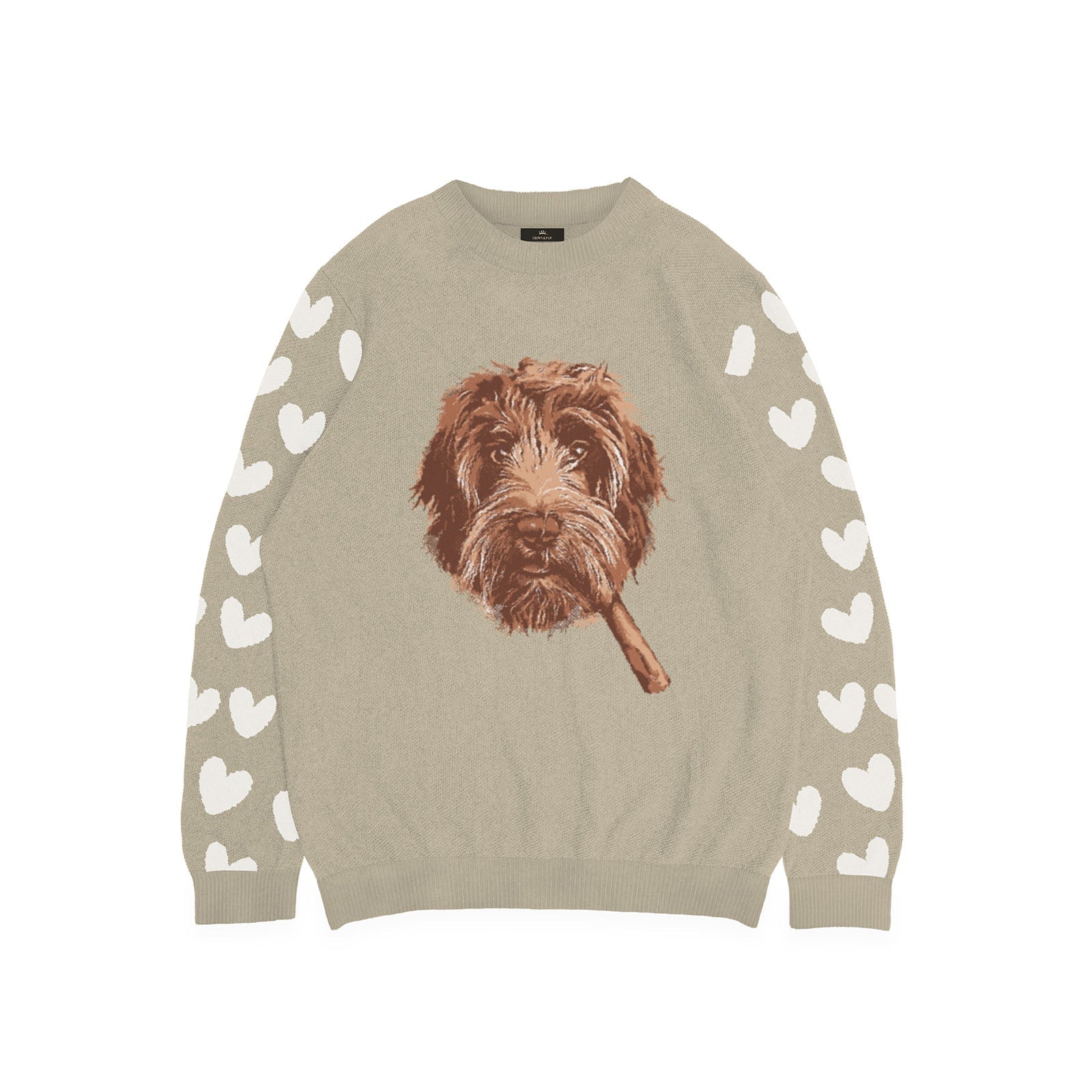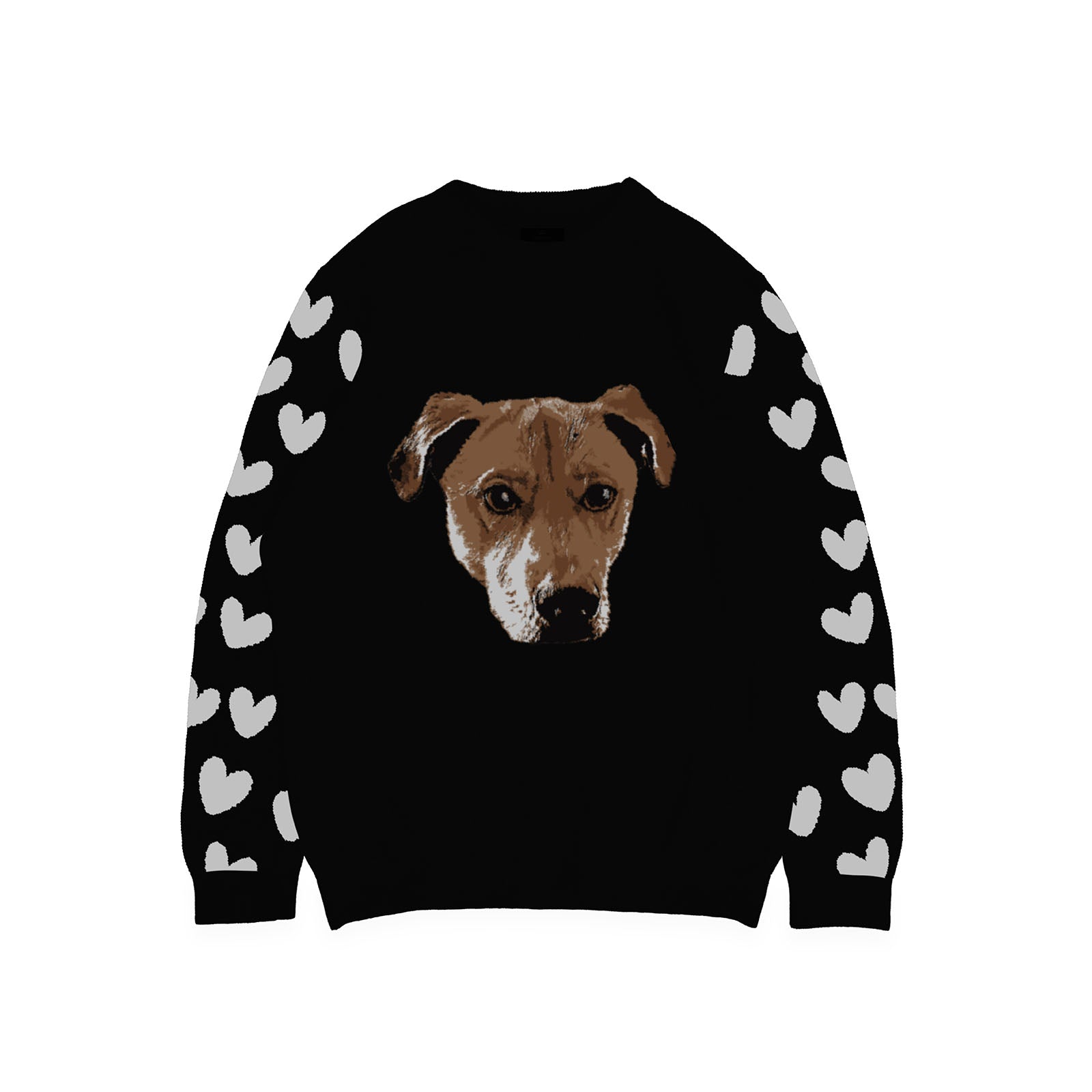 Custom Knitted Pet Face Sweater with Heart Sleeves