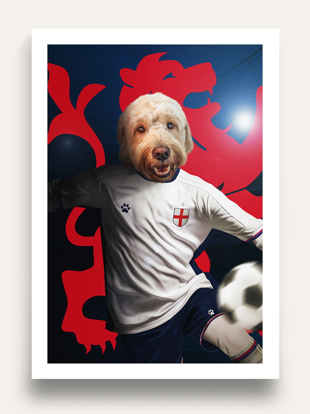 Transform your furry friend into an iconic England football player. Perfect for any pet enthusiast. this beautiful portrait will bring a smile to your face every time you look at it! Upload a photo and our artists will transform your pet into a stunning masterpiece.