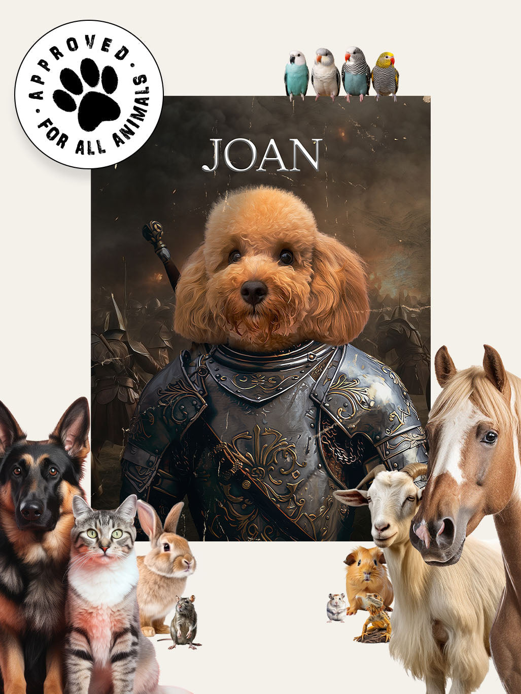 Turn your pet into the heroic figure of the past with our exquisite highly detailed custom pet portrait. Simply upload a photo and our artists will transform your pet into a stunning masterpiece.