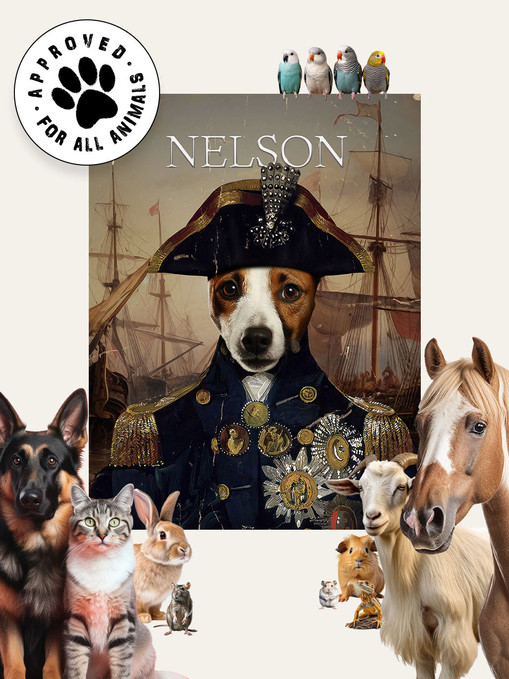 Turn your pet into the heroic figure of the past with our exquisite highly detailed custom pet portrait. Simply upload a photo and our artists will transform your pet into a stunning masterpiece.