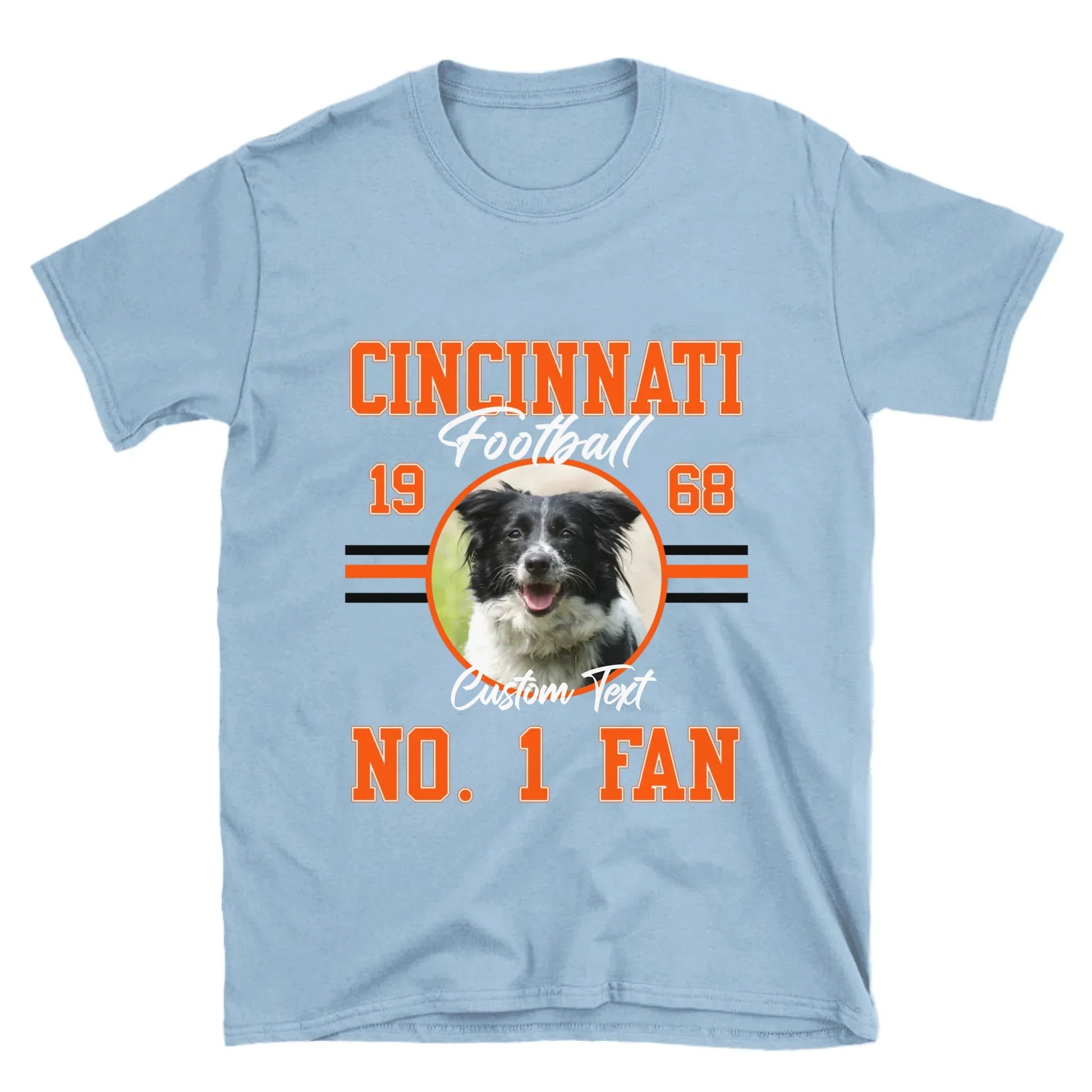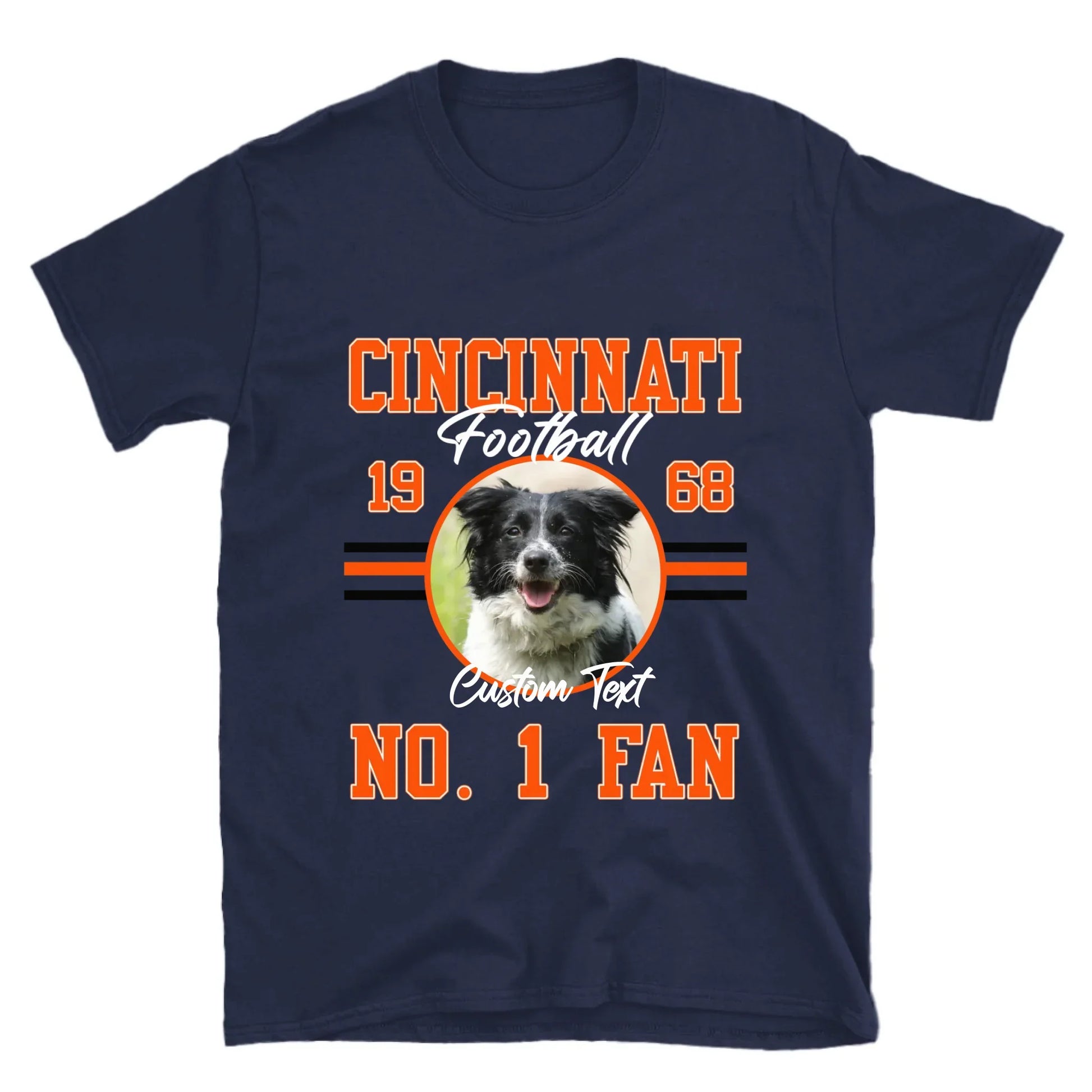 Custom American football fan t-shirts are 100% needed for your closet or wardrobe. Upload a photo of your pet. a friend or family member to create a hilarious custom fan tee!