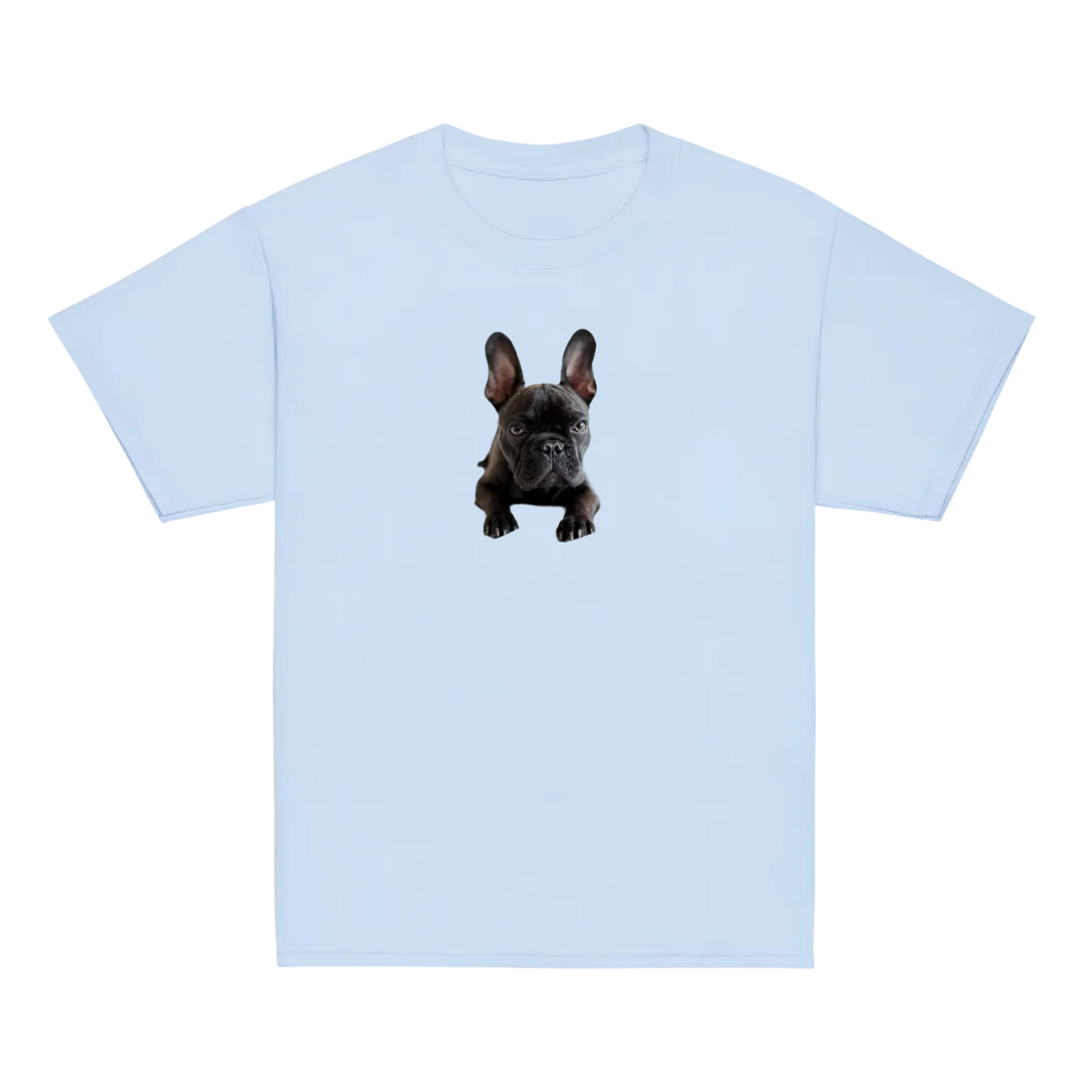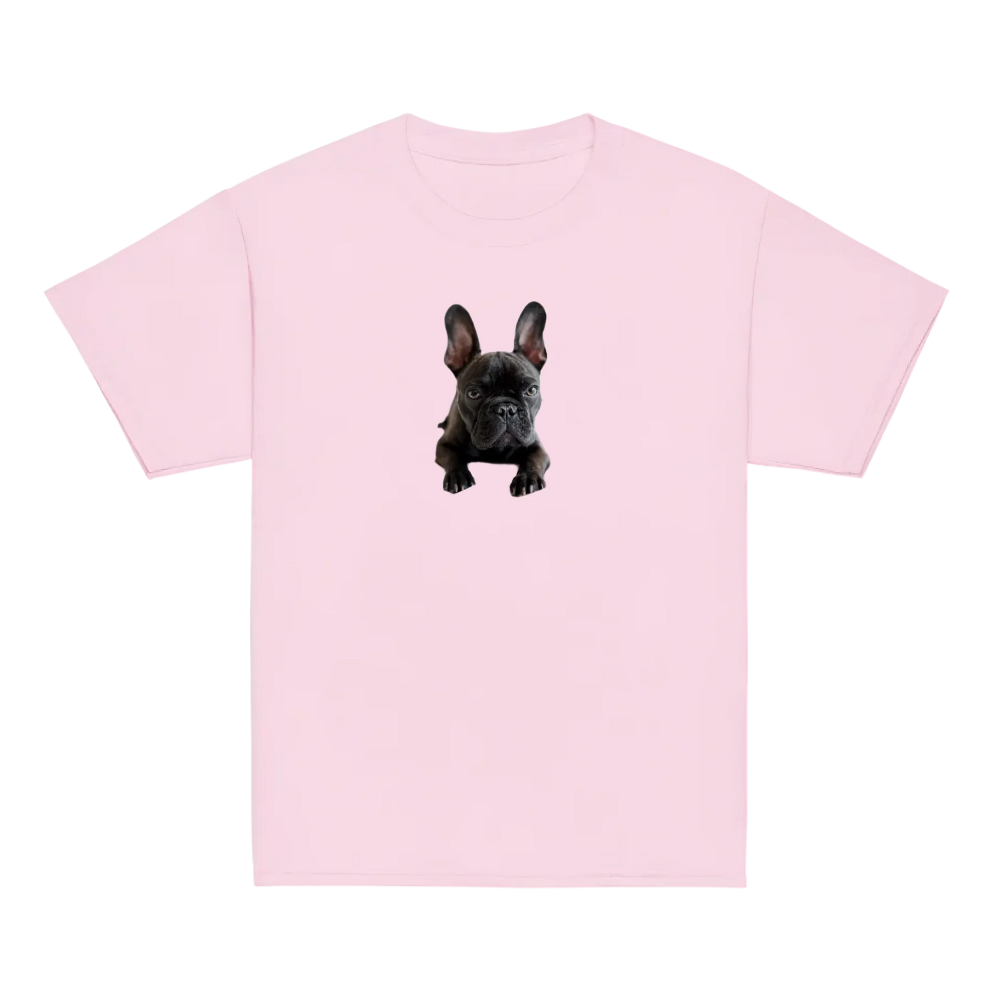 Create your own custom printed baby tee featuring you fur baby. Upload a photo of your pet to create your new favorite t-shirt. A minimal. simplistic design printed on to a stylish. slightly cropped baby tee style t-shirt.