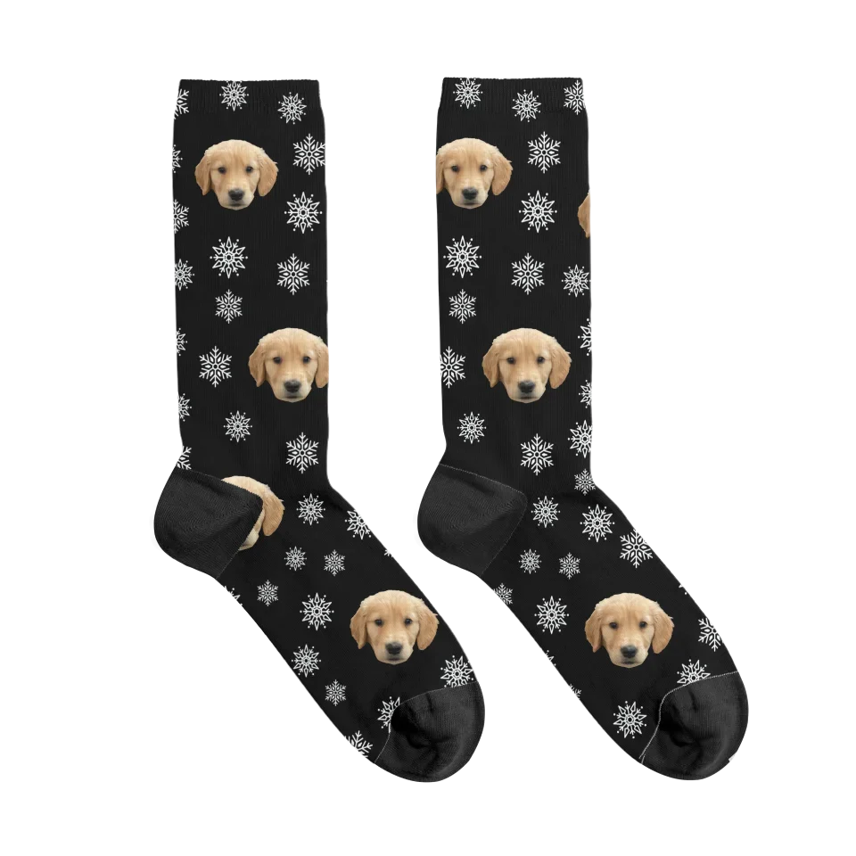 Make a lasting impression with personalized socks featuring a repeating pattern of your pet's face!