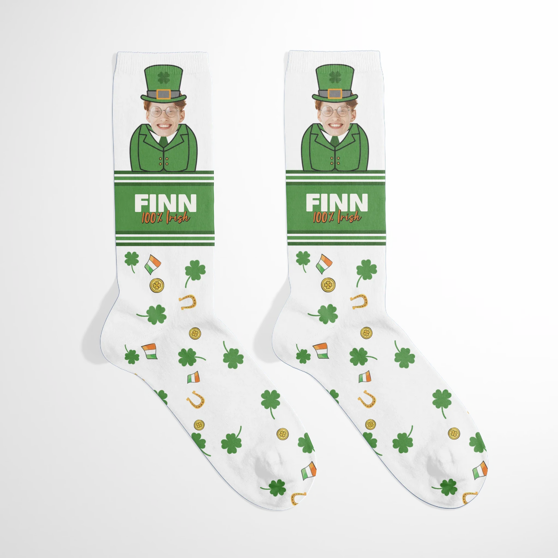 Upload a photo and let our website do the magic. Check out a live preview of your awesome custom St Patrick's Day sock design. Confirm your order when you're happy with your creation!