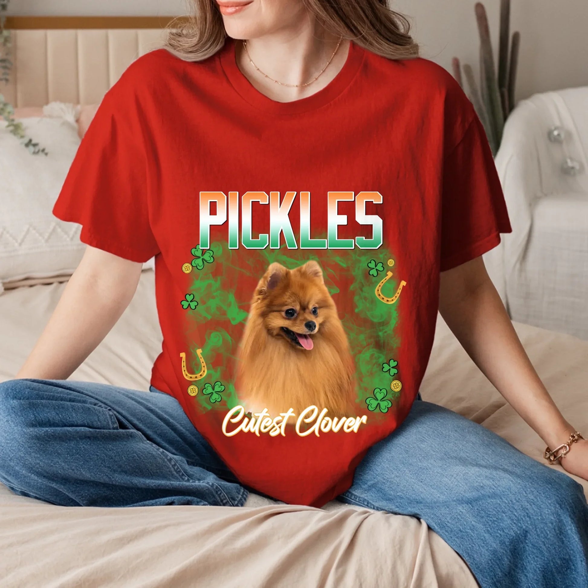 Celebrate the luck of the Irish with a customized St. Patrick's Day t-shirt featuring your pet! Upload a photo (or multiple photos) and then check out your design with our live preview. Make sure you're 100% happy with your St Paddy themed tee and place your order! We'll print and ship ready for you to celebrate the Irish in style!