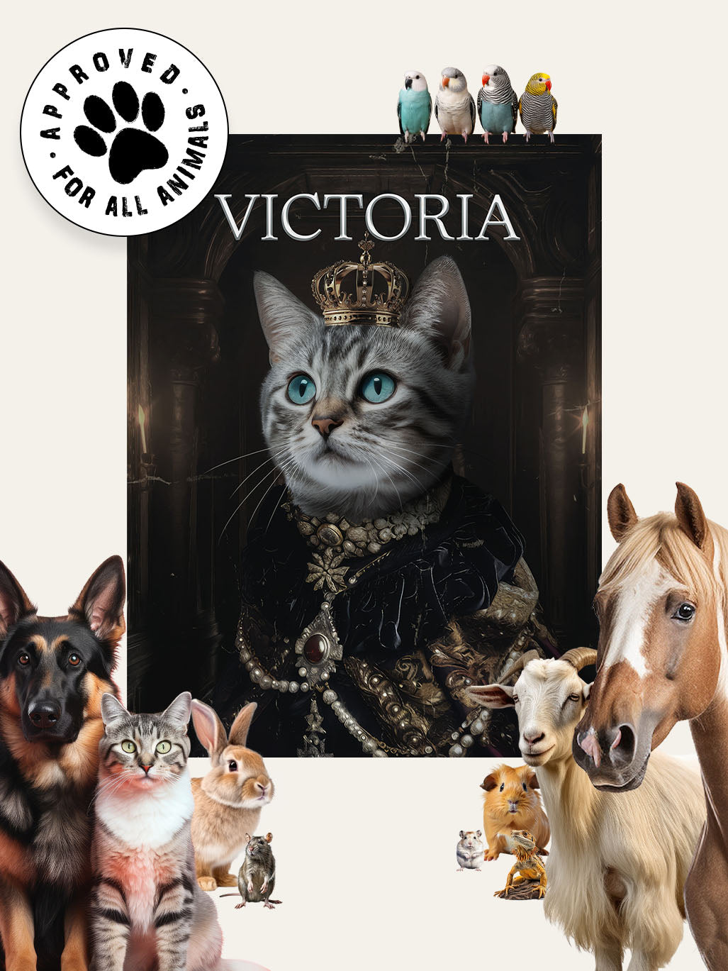 Turn your pet into the heroic figure of the past with our exquisite highly detailed custom pet portrait. Simply upload a photo and our artists will transform your pet into a stunning masterpiece.