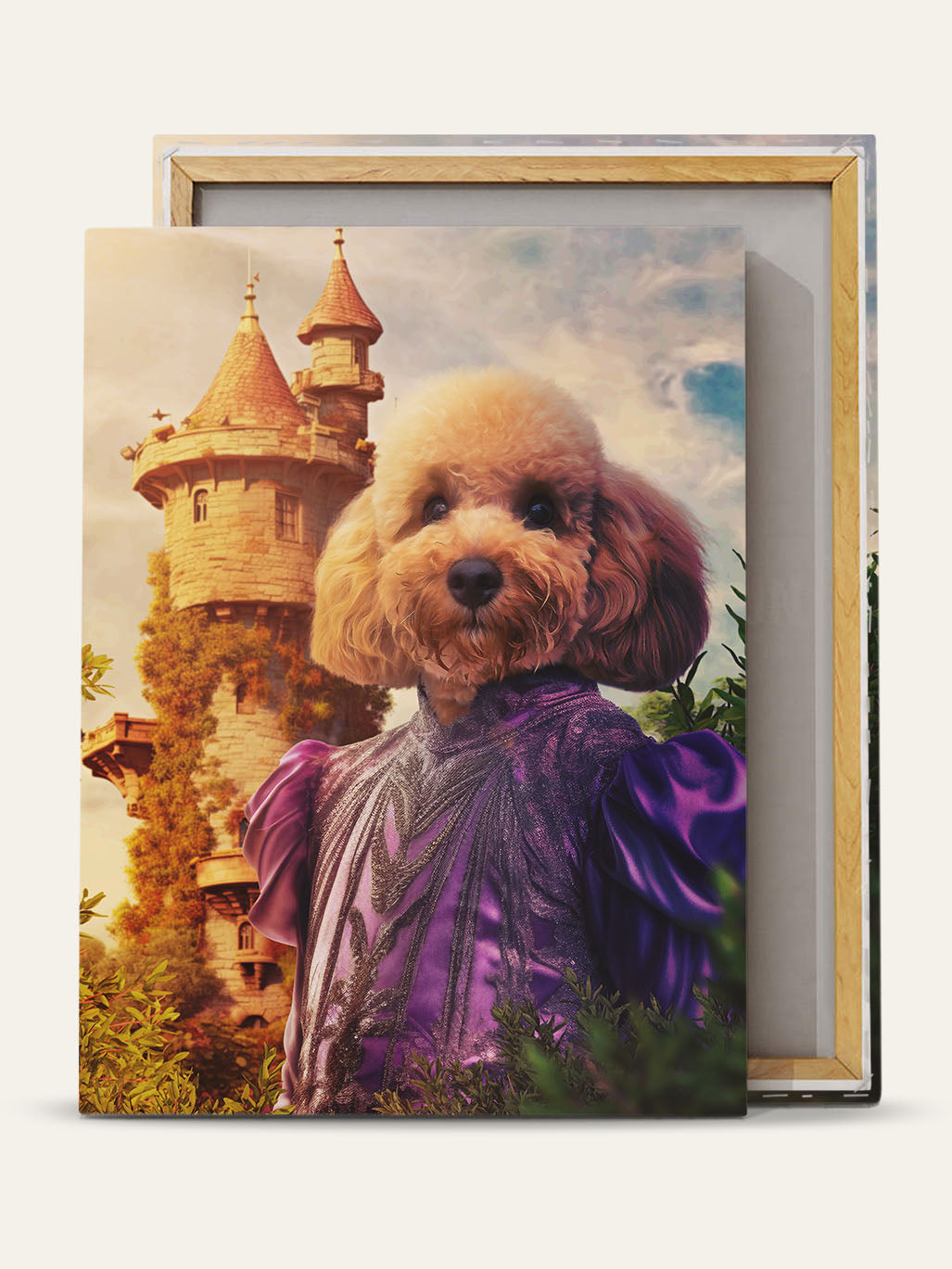 Surprise your furry friend with a one of a kind pet portrait! Using your favourite photo. we custom create a stunning portrait of your pet as Rapunzel. Hang it in your home and marvel at the beauty of your beloved pet every day. Upload a photo and our artists will transform your pet into a stunning masterpiece.