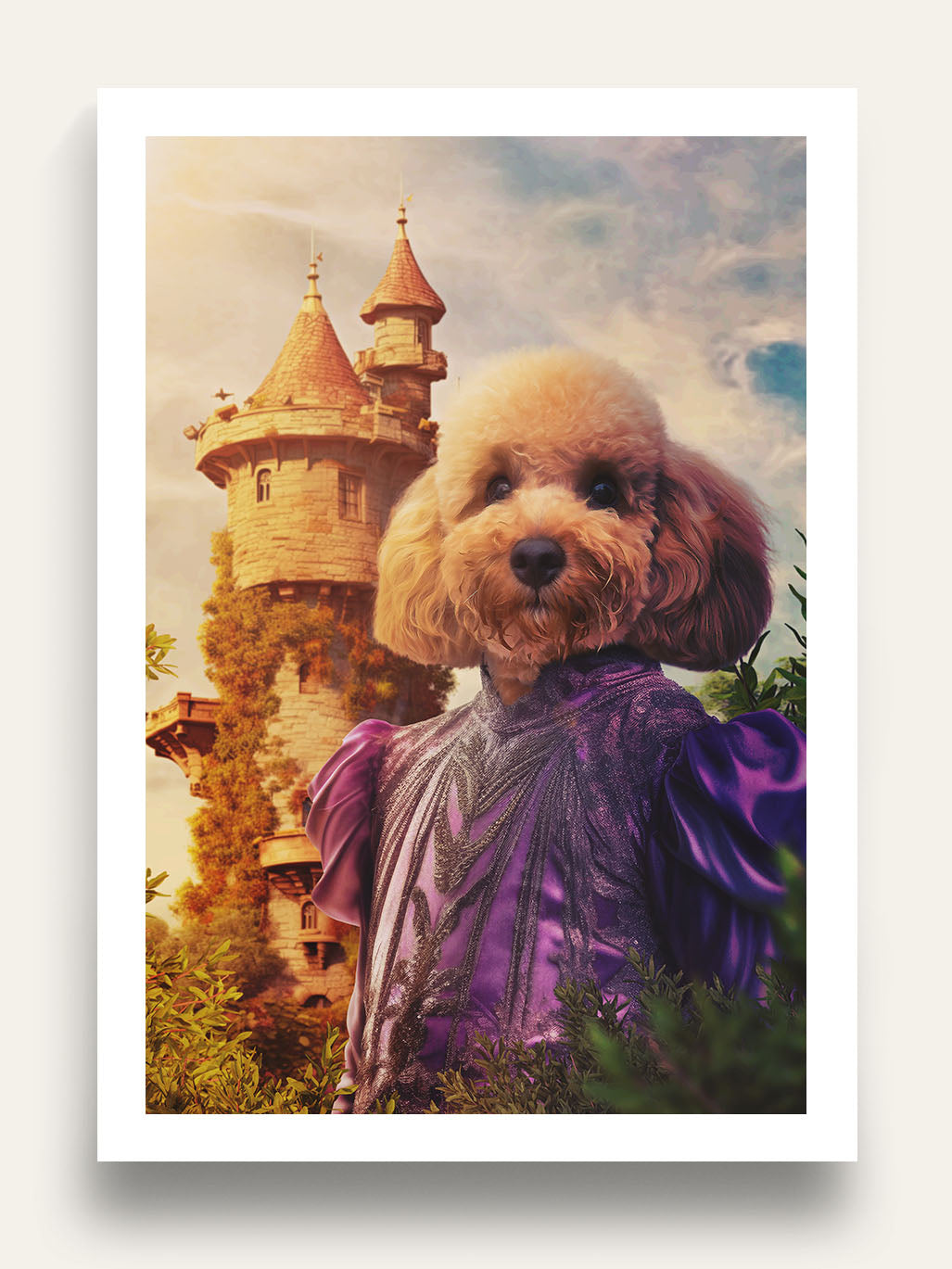 Surprise your furry friend with a one of a kind pet portrait! Using your favourite photo. we custom create a stunning portrait of your pet as Rapunzel. Hang it in your home and marvel at the beauty of your beloved pet every day. Upload a photo and our artists will transform your pet into a stunning masterpiece.