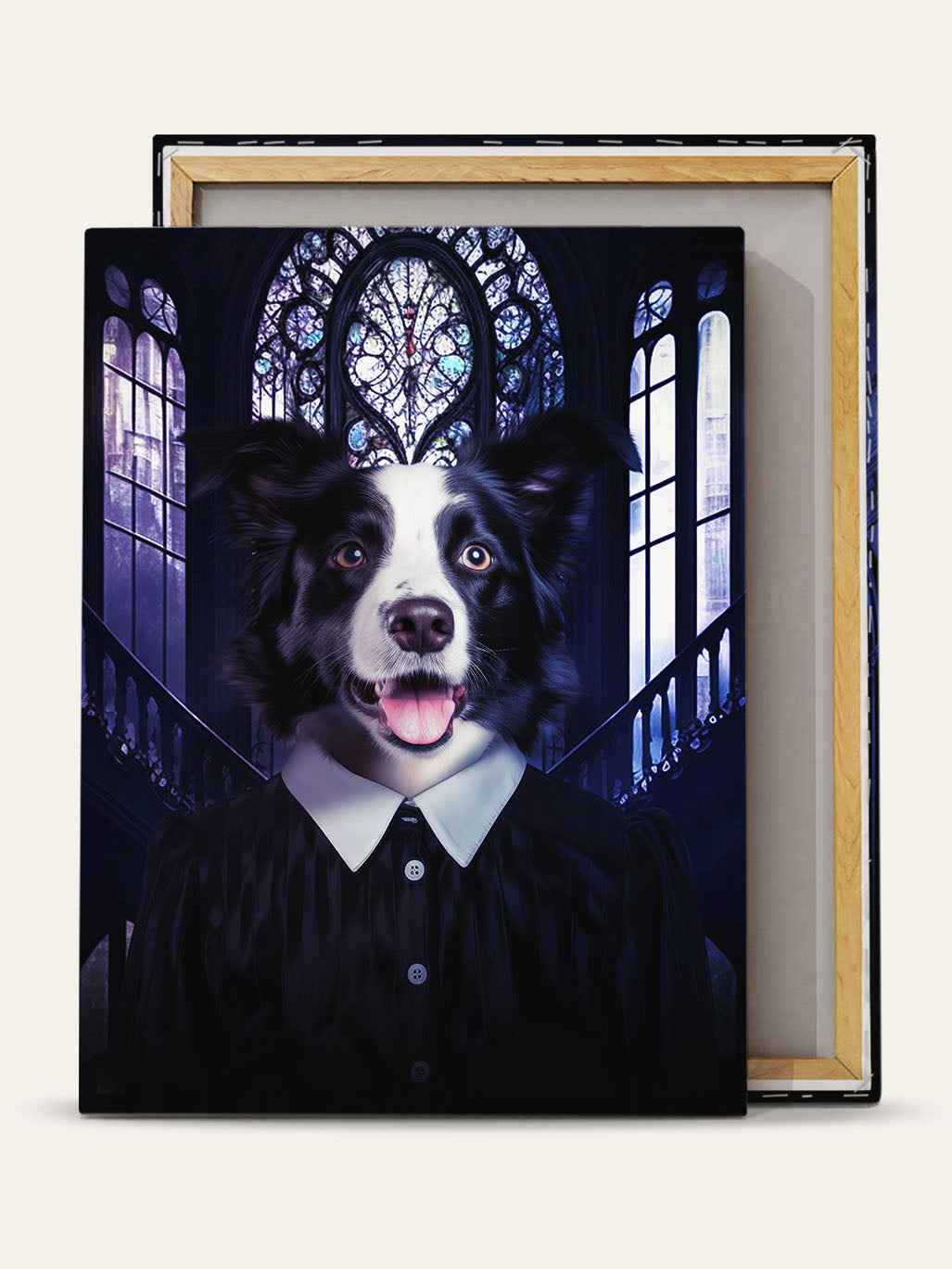 Introduce your pet to the spooky family with The Gothic Daughter Pet Portrait! Get your custom artwork featuring your beloved companion as the daughter from the classic show. Bring some gothic charm home with this unique pet portrait! Upload a photo and our artists will transform your pet into a stunning masterpiece.