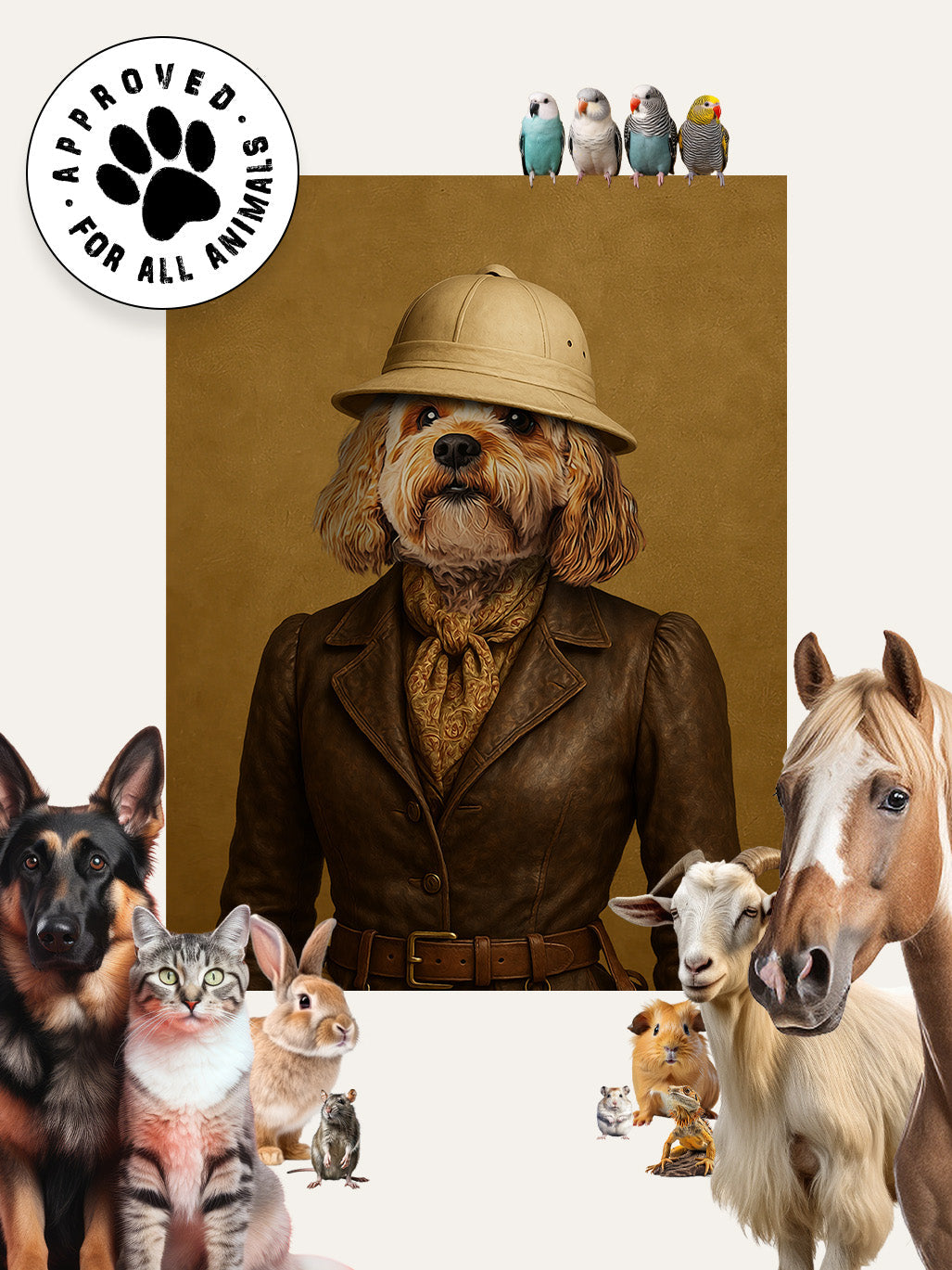 Turn your pet into the heroic figure of the past with our exquisite highly detailed custom pet portrait. Simply upload a photo and our artists will transform your pet into a stunning masterpiece.